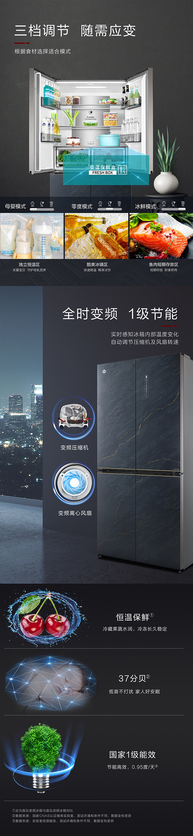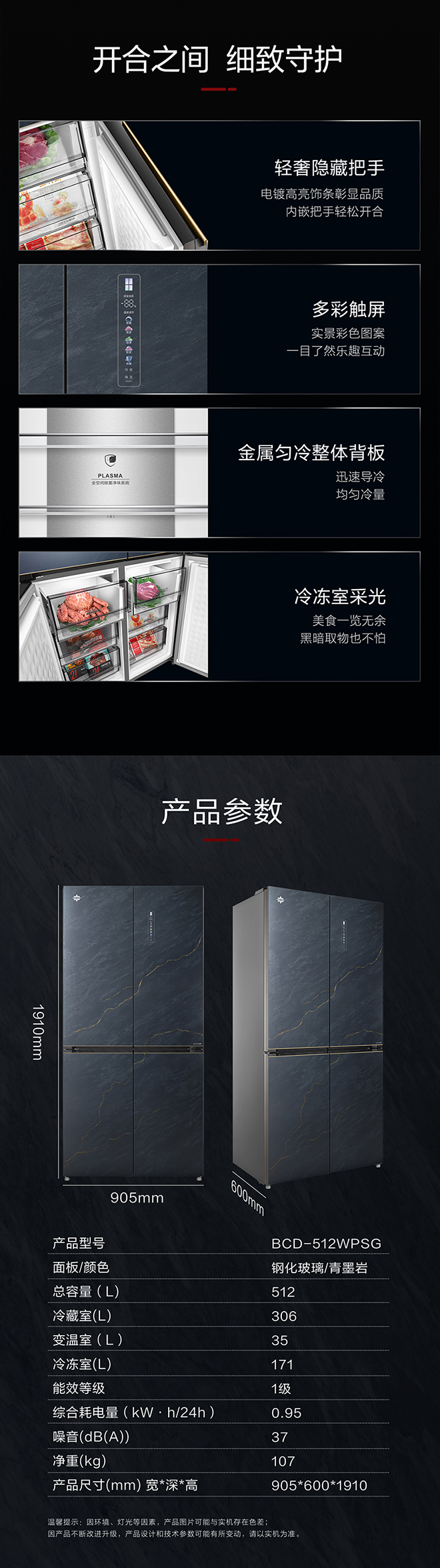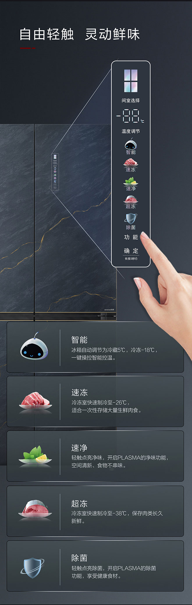 -38℃超凍鎖鮮;PLASMA全空間除菌凈味;平齊不凸出;雙通道循環散熱